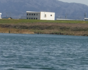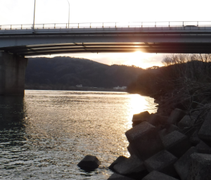 高屋橋上流右岸。だんだん 気温の低下を感じる。 スプ〜ンにて 深場を日没まで探るが何もなく。本日、この場所で3匹ゲットの情報あり。土手に上がり ウエーダーを脱ぐと寒さが身に染みる。