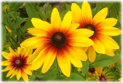 緑の中に黄色のはなびらが鮮やかに映っています。